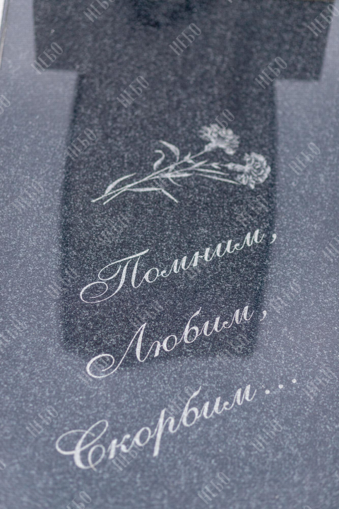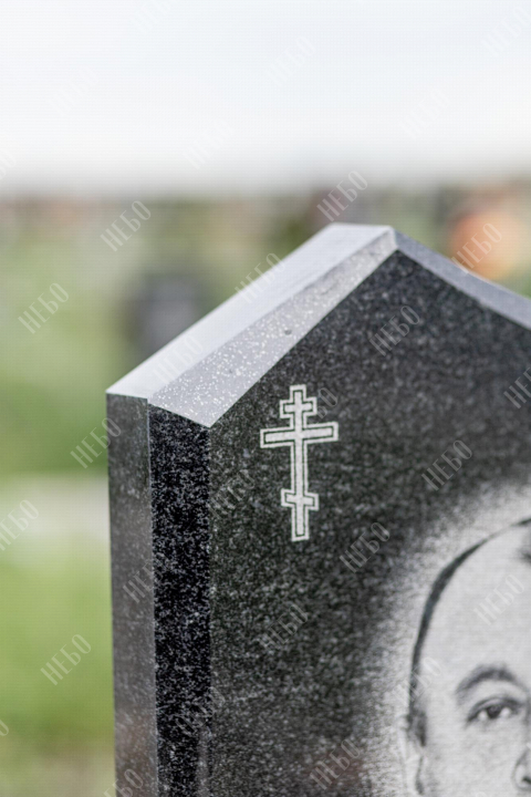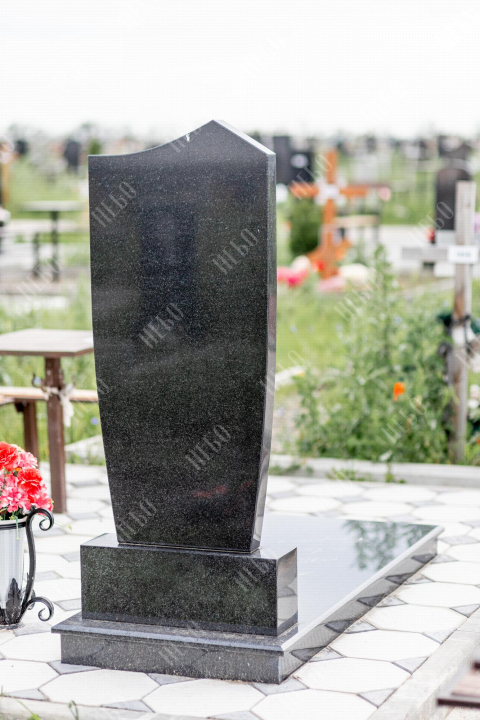 Христианский памятник с вертикальной стелой и закрытым надгробием. Гранитная стела ритуального изделия имеет фигурный верх и дополнительно обработанные края по контуру. Такое исполнение придает внешнему виду памятника сдержанный, но в то же время оригинальный вид. Размер и форма памятника проработаны экспертами с учетом нагрузки и эстетического восприятия ритуального изделия. Закрытое надгробие исключает появление сорняков на поверхности, а эпитафия на плите придает памятнику завершенный внешний вид.