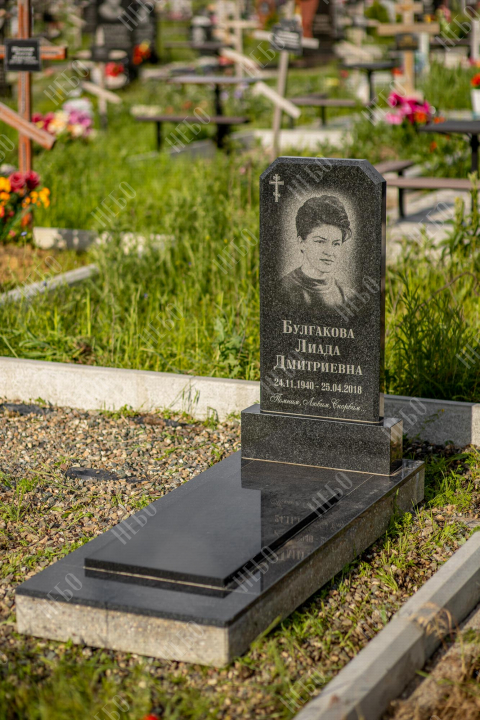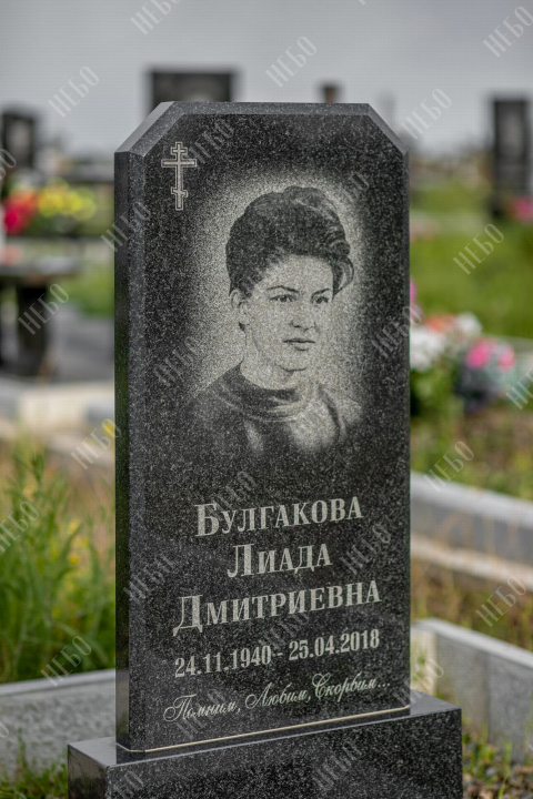 Для изготовления памятника использован гранит карельский габбро-диабаз. Это горная порода, отличающаяся прочностью и повышенной износостойкостью. Карельский габбро-диабаз устойчив к влаге и перепадам температур. Его плотность выше, чем у мрамора, поэтому именно его использовали при воздвижении вековых колонн исторических зданий. Гранитный памятник габбро-диабаз не требует особого ухода, обладает насыщенным черным цветом, что делает внешний вид памятника благородным и лаконичным.