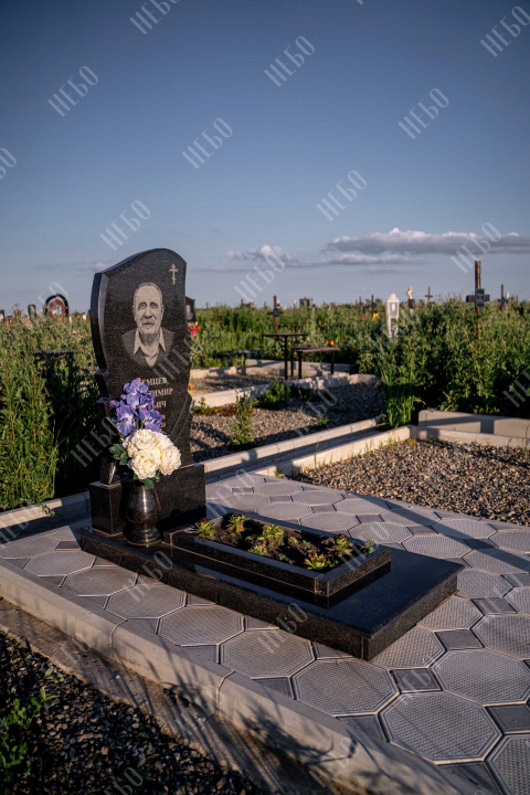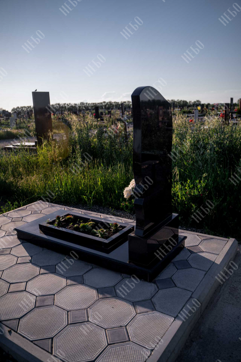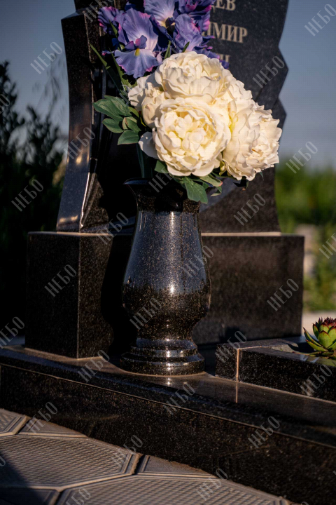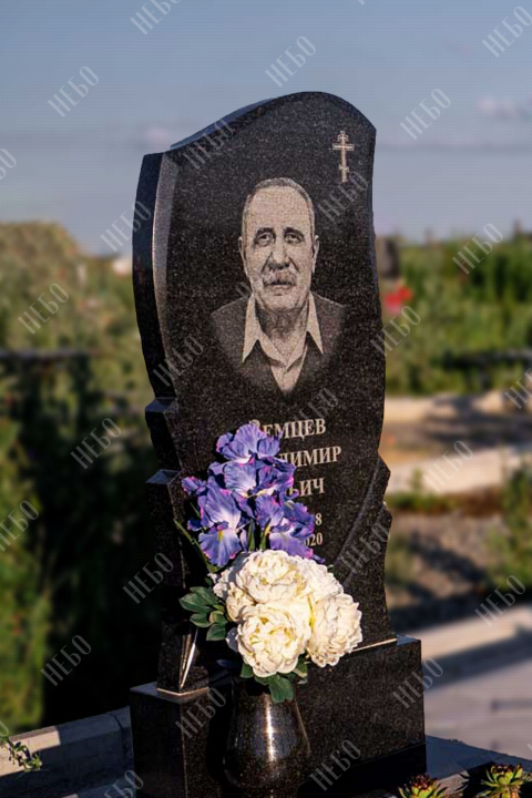 Памятник для православного человека с фигурной стелой и открытым надгробием выполнен в лаконичном черном цвете. Вертикальная гранитная плита изготовлена с использованием ассиметричных линий в дизайне памятника, что придает ритуальному изделию индивидуальность. Открытое надгробие позволит в дальнейшем использовать пространство на его поверхности для высадки цветов или других растений. Памятник изготовлен с учетом всех нюансов почвы на выбранном кладбище, размеры и форма изделия тщательно проработаны специалистами, дабы исключить возможные искажения в будущем.