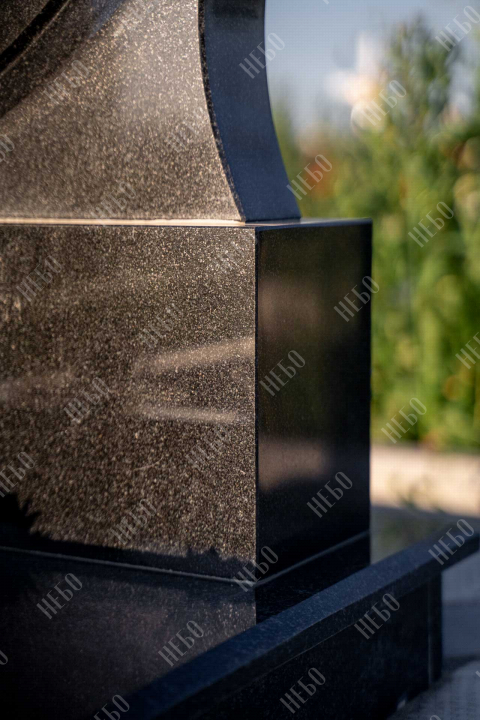 Для изготовления памятника использован гранит карельский габбро-диабаз. Это горная порода, отличающаяся прочностью и повышенной износостойкостью. Карельский габбро-диабаз устойчив к влаге и перепадам температур. Его плотность выше, чем у мрамора, поэтому именно его использовали при воздвижении вековых колонн исторических зданий. Гранитный памятник габбро-диабаз не требует особого ухода, обладает насыщенным черным цветом, что делает внешний вид памятника благородным и лаконичным.